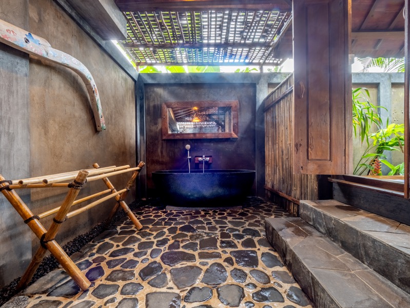 An inviting open-air space beneath provides a quiet spot to lounge, savor leisurely meals, or simply enjoy the beauty of the tropical landscape. Designed with simplicity and comfort in mind, Arunika is an intimate retreat where every moment feels effortlessly peaceful.
