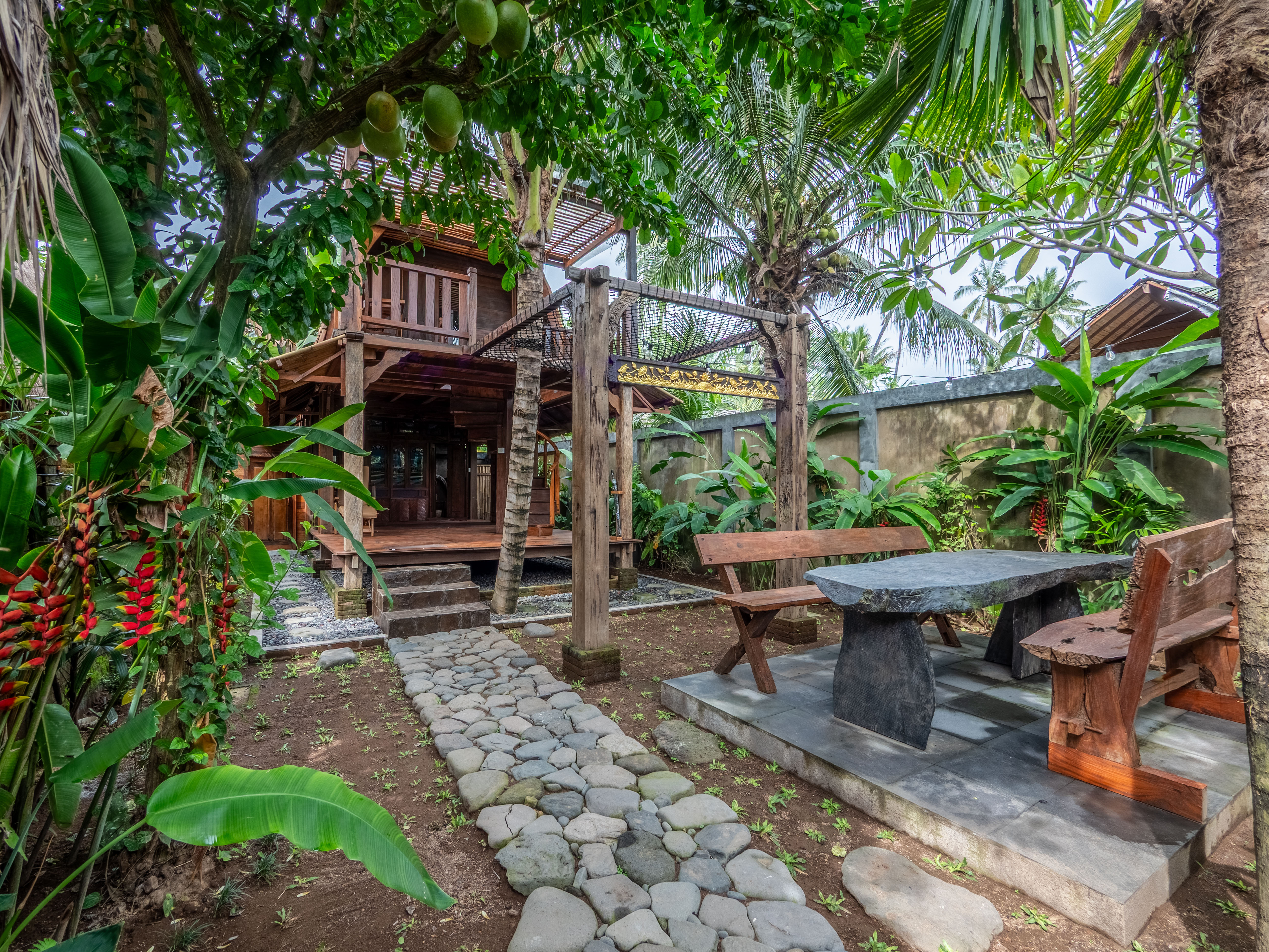 Unique wooden house made from selected wood, beautiful villa atmosphere with Balinese characteristics, not far from the beach and you can rent a boat to see the best sunrise and see Mount Agung in the morning