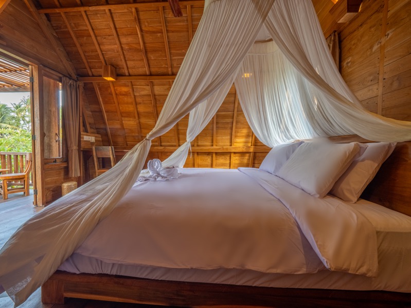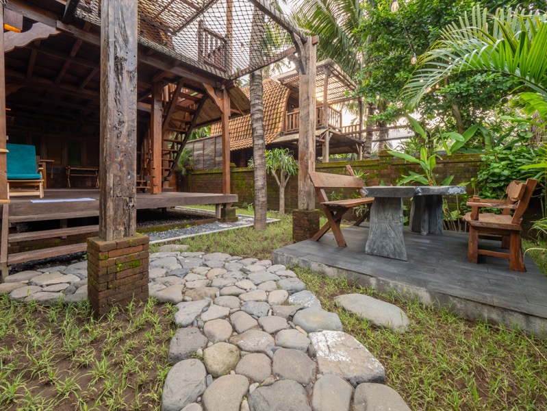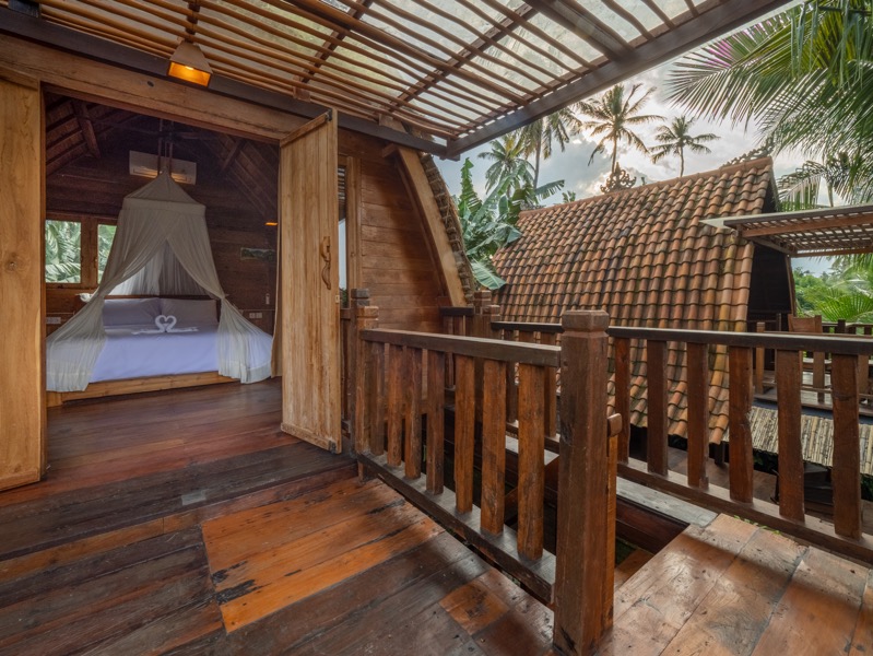 Swastamika is a tranquil, one-bedroom villa thoughtfully designed for guests seeking solitude and serenity. Perched gracefully on the upper floor, the bedroom offers a cozy, restful haven surrounded by the soft sounds of nature and gentle tropical breezes.