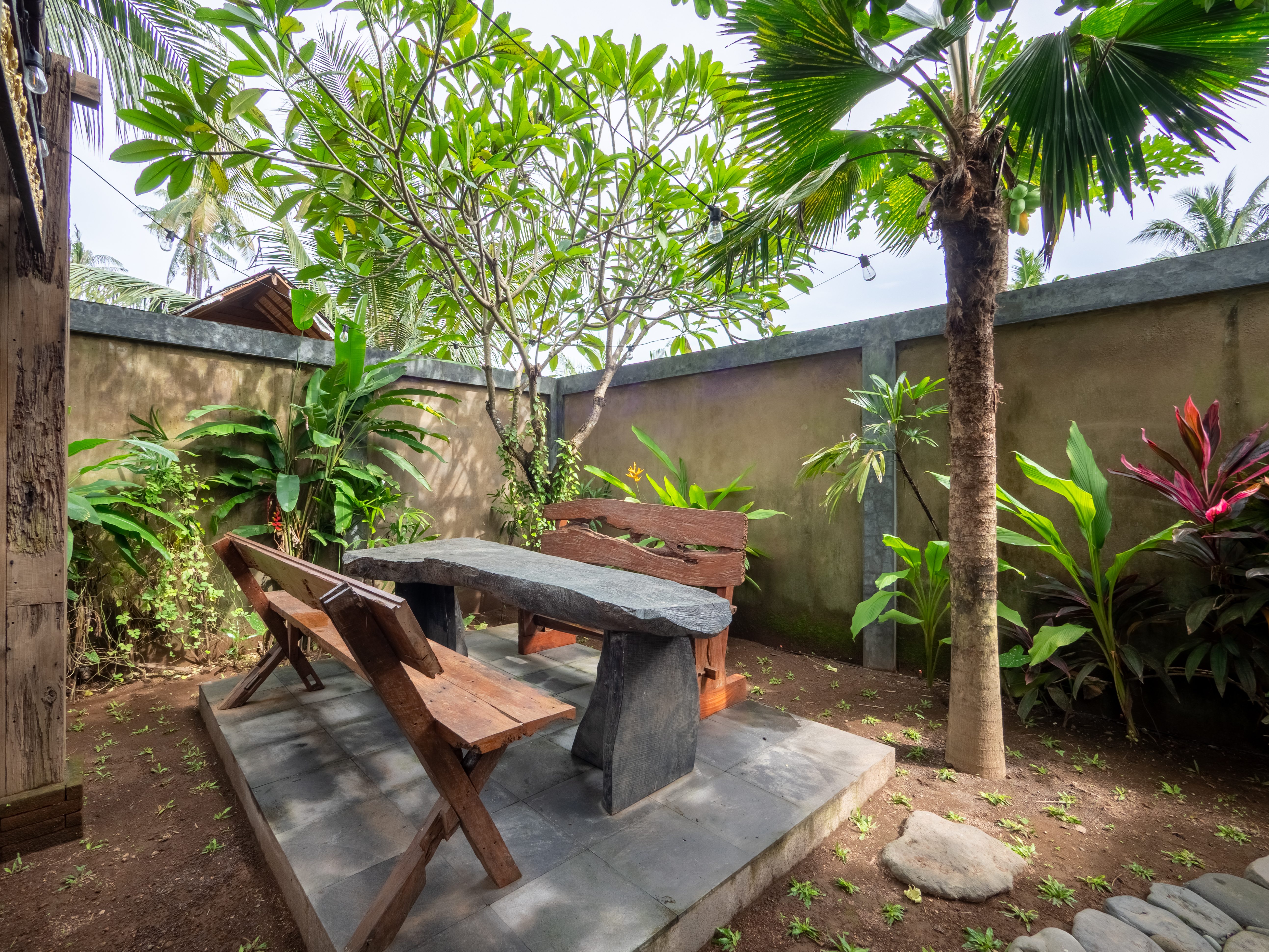 An inviting open-air space beneath provides a quiet spot to lounge, savor leisurely meals, or simply enjoy the beauty of the tropical landscape. Designed with simplicity and comfort in mind, Arunika is an intimate retreat where every moment feels effortlessly peaceful.