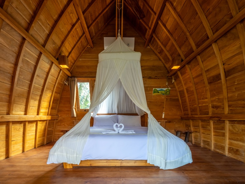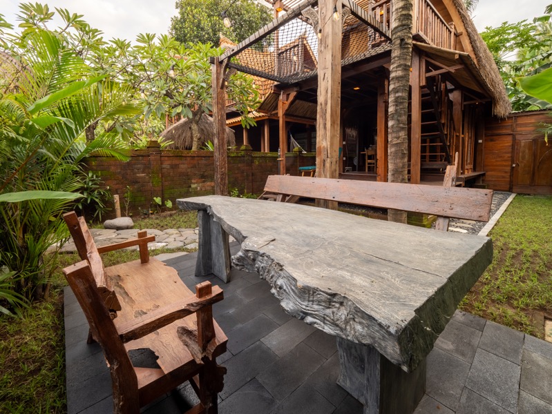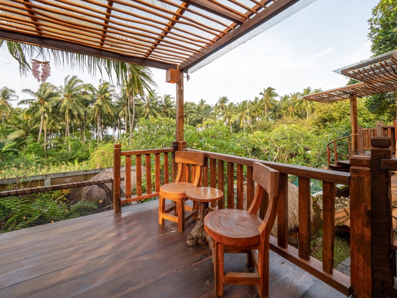 Swastamika is a tranquil, one-bedroom villa thoughtfully designed for guests seeking solitude and serenity. Perched gracefully on the upper floor, the bedroom offers a cozy, restful haven surrounded by the soft sounds of nature and gentle tropical breezes.